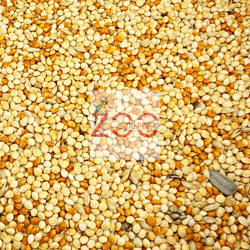 A takarmány tartalmaz: sárgakölest, vöröskölest, fénymagot, muhart.