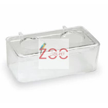 Etető fedéllel és lyukakkal, amelyek megakadályozzák, hogy a madarak ételt szórjanak ki. Ez egy speciális etető kis madarak számára, mint a kanárik, kardulik, egzotikus madarak stb. Átlátszó műanyagból készült, így a tartalom mindig látható. Két lyukkal ellátott tetővel rendelkezik, amely megakadályozza az étel kiömlését.