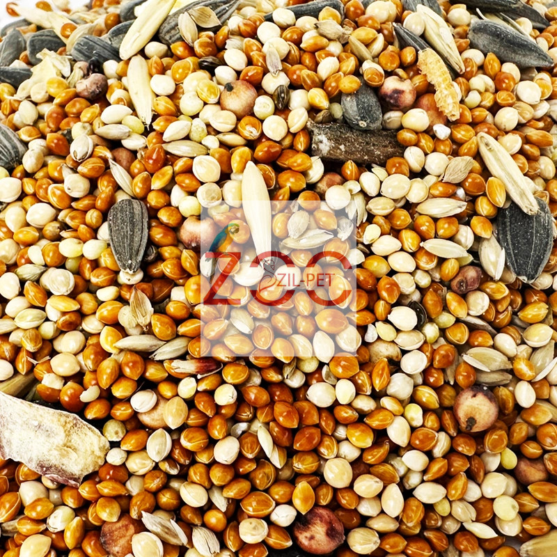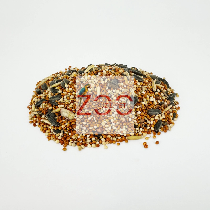 A takarmány tartalmaz: piroskölest, sárgakölest, zabot, napraforgót.