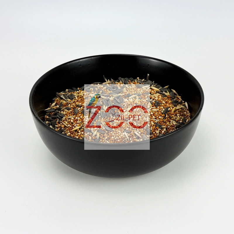 A takarmány tartalmaz: piroskölest, sárgakölest, zabot, napraforgót.